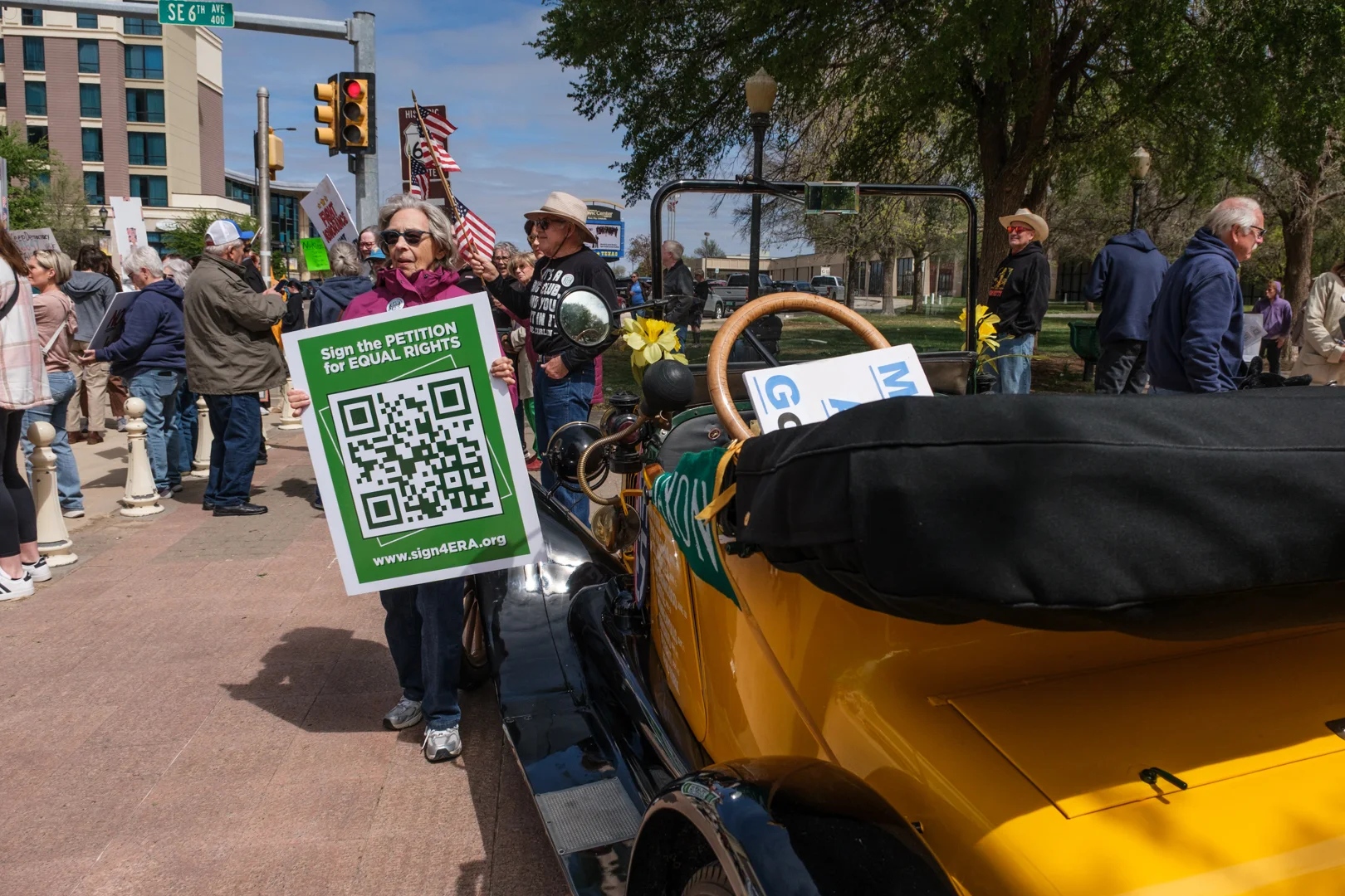 A day for gathering petition signatures — No Kings Day in Amarillo, where democracy belongs to the people and the ERA belongs in the Constitution. Photo: Nina Zacuto