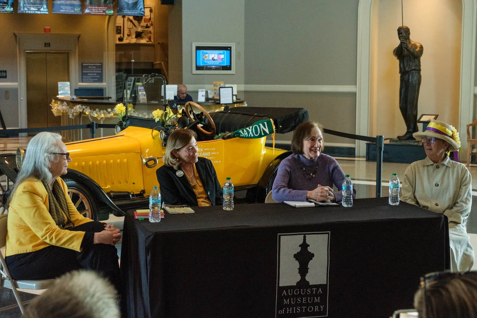 The Golden Flyer II pulls into the Augusta Museum of History — the first stop on the tour where the Saxon rolled indoors, taking its rightful place as the featured exhibit for Women's History Month.The Golden Flyer II pulls into the Augusta Museum of History. Photo: Nina Zacuto