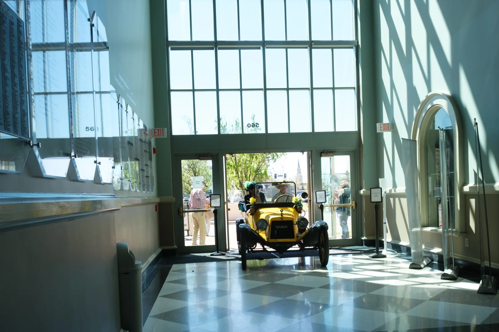 Everywhere else we had gone, the Golden Flyer II was on display outside the venue. Not here. Glaser offered the opportunity to drive the Saxon inside the rotunda of their beautiful recently restored museum for an event involving leading members of the Augusta community. The Golden Flyer II was the featured exhibit for the whole museum on that day.