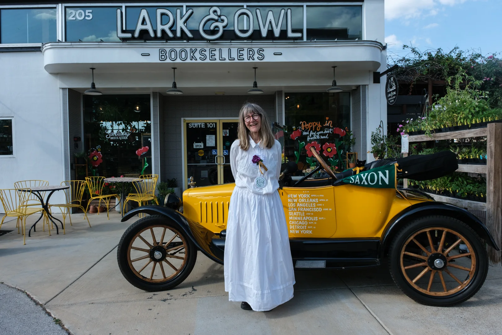 The day concluded at Lark & Owl Booksellers, where Jeryl shared lively stories about Alice and Nell, the two women featured in Driving the Vote for Women, and she signed copies, while the Golden Flyer II parked out front, once again serving as a powerful visual reminder of the movement's enduring spirit.
