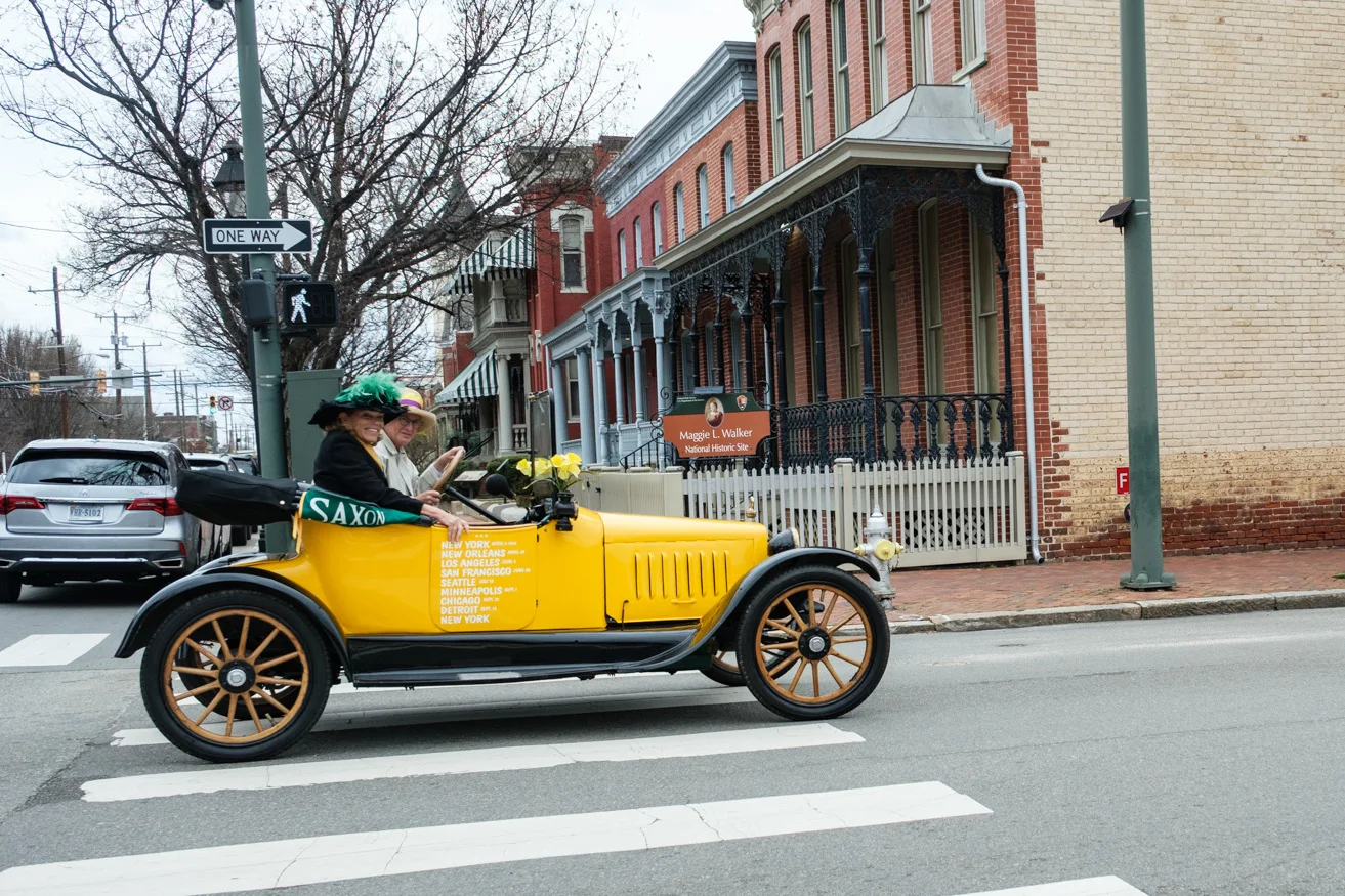 The day began in the historic Jackson Ward neighborhood — one of Richmond's most storied communities, just steps from the Maggie L. Walker Historic Site. Walker was no ordinary trailblazer. She was the first woman in the United States to charter and serve as president of a bank — an African American woman who built economic power for her community in the teeth of Jim Crow, at a time when both her race and her gender were deployed as arguments against her right to participate in American life. Parking the Golden Flyer II down the street from her historic site on International Women's Day was not an accident. It was a salute.