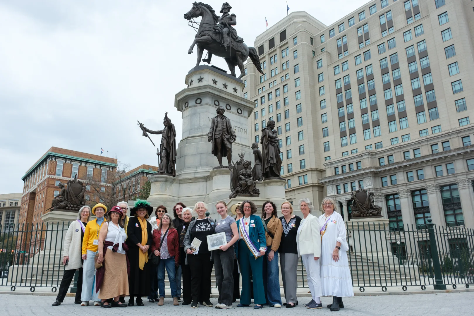 She called on everyone gathered to walk up to that statue and recreate the photo. To stand where those women stood. To make visible, in 2026, the line that runs unbroken from their fight to ours.